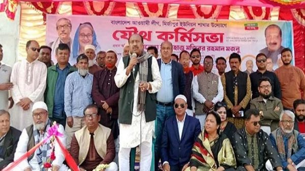 মির্জাপুর ইউনিয়ন আওয়ামী লীগের সভাপতি শাহ আলমের সভাপতিত্বে কর্মীসভায় প্রধান অতিথির বক্তব্য রাখেন বগুড়া-৫ (শেরপুর-ধুনট) আসনের আওয়ামী লীগের দলীয় মনোনিত প্রার্থী ও বগুড়া জেলা আওয়ামী লীগের সভাপতি মজিবর রহমান মজনু।