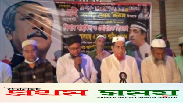 ১৫ আগস্ট শনিবার সন্ধ্যা ছয় ঘটিকায় দোয়ার আয়োজন করা হয় এবং দোয়া শেষে অসহায় দুস্থদের মাঝে খিচুড়ি বিতরণ করা হয়।