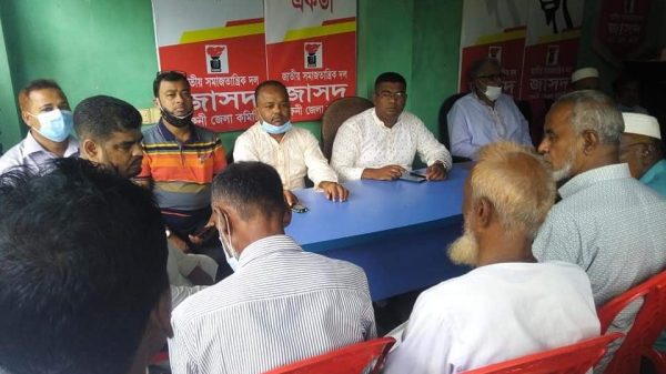 ফেনীর ছাগলনাইয়ার ৫ নং মহামায়া ইউনিয়নে জাসদের কর্মীসভা অনুষ্ঠিত হয় । জাতীয় সমাজতান্ত্রিক দল-জাসদের ছাগলনাইয়া উপজেলা ঘোষিত কর্মসূচির অংশহিসেবে তৃণমূল পর্যায়ে নেতাকর্মীদের সম্পৃক্ততা নিশ্চিতের লক্ষ্যে এবং সাংগঠনিক কর্মসূচি গতিশীল করতে এই কর্মীসভার আয়োজন করা হয়। আজ রবিবার (২৭সেপ্টেম্বর) সকাল ১০:৩০ মিনিটের সময় মহামায়া ইউনিয়নের সভাপতি মোহাম্মদ হান্নান এর সভাপতিত্বে উক্ত কর্মী সভায় প্রধান অতিথির বক্তব্য রাখেন ,ছাগলনাইয়া উপজেলার সভাপতি বীর মুক্তিযুদ্ধা জনাব আব্দুল হাই মেম্বার,বিশেষ অতিথির বক্তব্য রাখেন, ছাগলনাইয়া উপজেলা জাসদের সাধারণ সম্পাদক ,জনাব রেজাউল করিম সরকার সোহাগ , ফেনী জেলা জাসদের সহ সভাপতি মোঃ নুরুল আমিন।ছাগলনাইয়া উপজেলা জাসদের যুগ্ম সাধারণ সম্পাদক, মোঃছলিম উল্ল্যাহ ভুঁইয়া,ফেনী জেলা শ্রমিক জোটের সভাপতি, মোঃ সাহাবুদ্দিন ছাগলনাইয়া উপজেলা জাসদের সাংগঠনিক সম্পাদক মোহাম্মদ আবদুল্লাহ ভূঁইয়া, উপস্থিত ছিলেন ছাগলনাইয়া উপজেলা জাসদের দপ্তর সম্পাদক ,হেলাল উদ্দিন ভূঁইয়া,প্রচার ও প্রকাশনা সম্পাদক, আবুল বাশার কর্মীসভায় সঞ্চালনার দায়িত্ব পালন করেন মহামায়া ইউনিয়নের সাধারণ সম্পাদক ,কাজী সাইফুল ইসলাম। আরো উপস্থিত ছিলেন উপজেলা , ইউনিয়ন, কর্মজীবী নারী ও ওয়ার্ড নেতৃবৃন্দ।
