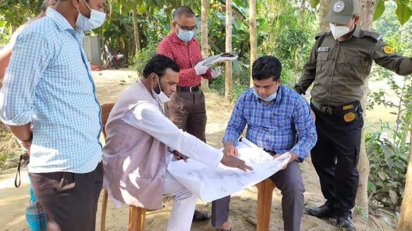 গণপ্রজাতন্ত্রী বাংলাদেশ সরকারের প্রধানমন্ত্রীর ঘোষণা অনুযায়ী বাংলাদেশের কোন মানুষ ভূমি ও ঘরছাড়া থাকবে না। এমন নির্দেশনায় দেশের সকল জেলা উপজেলায় সংশ্লিষ্ট প্রশাসনের কর্মকর্তা জনপ্রতিনিধিরা সেইসব ভূমিহীনদের পুনর্বাসন কল্পে সরকারি খাস জমি খুঁজে সেসব ভূমিহীনদের কে পুনর্বাসন করে আসছে। তারই ধারাবাহিকতায় ১৮ নভেম্বর বুধবার ফুলগাজী উপজেলা সদর ইউনিয়নের মুহুরী নদীর কোল ঘেঁষে উত্তর বরইয়া গ্রামে সরেজমিনে গিয়ে নকশা খতিয়ান মোতাবেক খাস জমি সনাক্ত করছে ফুলগাজী উপজেলা নির্বাহী অফিসার মোঃ সাইফুল ইসলাম। এ সময় সাথে ছিলেন ফুলগাজী সদর ইউনিয়ন পরিষদ চেয়ারম্যান নুরুল ইসলাম, সদর ইউনিয়ন ভূমি কর্মকর্তা কুমুদ বিহারী দাস প্রমূখ।