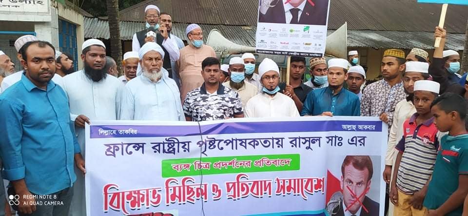 ফ্রান্স সরকারের পৃষ্ঠপোষকতায় মহানবী হযরত মুহাম্মদ (সা.) এর ব্যঙ্গচিত্র প্রদর্শনের প্রতিবাদে ছাগলনাইয়া উপজেলার ৫ নং মহামায়া ইউনিয়নের মনুরহাট বাজারে “মনুরহাট কেন্দ্রীয় জামে মসজিদের” উদ্যোগে বিক্ষোভ মিছিল ও সমাবেশ অনুষ্ঠিত হয়। আজ শুক্রবার (২০ নভেম্বর ) বাদ আসরের নামাজ শেষে মনুরহাট কেন্দ্রীয় জামে মসজিদের খতিব মাওলানা আব্দুল ওয়াবে’র সভাপতিত্বে ও বিশিষ্ট সমাজ কর্মী ও মনুরহাট কেন্দ্রীয় জামে মসজিদ পরিচালনা কমিটির সাধারণ সম্পাদক জাফর হোসেন মজুমদার’র সঞ্চালনায় স্বাগত বক্তব্য রাখেন মনুরহাট কেন্দ্রীয় জামে মসজিদ পরিচালনা কমিটির সভাপতি হাসান মাহমুদ মজুমদার এসময় আরো বক্তব্য রাখেন ১ নং ওয়ার্ডের মেম্বার ওবায়দুল হক মজুমদার, পশ্চিম দেবপুর মহিসুন্নাহ মাদ্রাসার মুহতামিম মাওলানা হুসাইন সাহেব, দেবপুর ইসলামিয়া ফাজিল মাদ্রাসার প্রভাষক মাওলানা মাহফুজুর রহমান, পূর্ব দেবপুর আলী মজুমদার জামে মসজিদের খতিব মাওলানা আব্দুল হালিম, তালবাড়িয়া মাদ্রাসার শিক্ষা সচিব ও পূর্ব দেবপুর পাটোয়ারী বাড়ী জামে মসজিদের খতিব মাওলানা হাফেজ মেজবাউজ্জমান ।