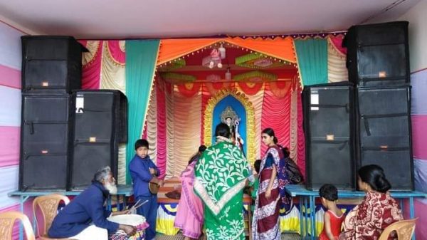 অনুষ্ঠিত এই স্বরস্বতী পূজার সহযোগিতায় ছিল, সরকার ষ্টোর, মানহা সুপার সোপ, সরকার ফার্নিচার, শিল্পী ষ্টোর, সৈনিক পেপার হাউজ এন্ড ষ্টেশনারী, মুক্তা ভ্যারাইটি ষ্টোর এন্ড মানিক রতন কফি হাউজ, মুন ইরাফি গার্ডেন সিটি, ওয়ান টু নাইনটি নাইন এবং শেরপুর সাব-রেজিষ্ট্রি অফিস দলিল লেখক সমিতি।