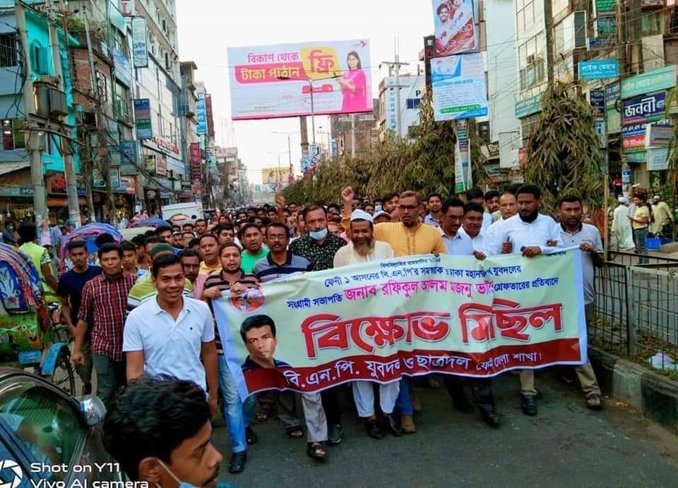 বাংলাদেশ জাতীয়তাবাদী যুবদল কেন্দ্রীয় সংসদের সহ সভাপতি,ঢাকা মহানগর দক্ষিন যুবদলের সভাপতি এবং ফেনী ১ নিবাচনী আসনের বিএনপির সাংগঠনিক সমন্বয়ক রফিকুল আলম মজনুকে গ্রেপ্তারের প্রতিবাদে ৪ ফেব্রুয়ারী বৃহস্পতিবার ফেনী শহরে এবং ছাগলনাইয়া,ফুলগাজী ও পরশুরামে বিক্ষোভ করেছে বিএনপি,যুবদল ছাত্রদলের নেতাকর্মীরা।