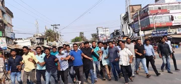 বৃহস্পতিবার বিকেলে জেলা বিএনপি,যুবদল,ছাত্রদলের ব্যানারে আয়োজন বিক্ষোভ মিছিলের নেতৃত্ব দেন জেলা বিএনপির আহবায়ক শেখ ফরিদ বাহার ও সদস্য সচিব আলাল উদ্দিন আলাল।মিছিলটি শহরে ইসলাম পুর রোড থেকে শুরু হয়ে বড় মসজিদ হয়ে প্রেসক্লাবের সামনে শেষ হয়।মিছিলে জেলা বিএনপির যুগ্ম আহবায়ক এম এ খালেক,এয়াকুব নবী,আনোয়ার হোসেন পাটোয়ারী,সদস্য এডভোকেট পার্থ পাল,জেলা যুবদলের সাংগঠনিক সম্পাদক নইমুল্লাহ চৌধুরী বরাত,জেলা স্বেচ্ছাসেবক দলের সাধারণ সম্পাদক এস এম কায়সার এলিন,জেলা ছাত্রদলের সভাপতি সালাহ উদ্দিন মামুন,সাধারণ সম্পাদক মোরশেদ আলম মিলন,পৌর যুবদলের আহবায়ক জাহিদ হোসেন বাবলু প্রমুখ।