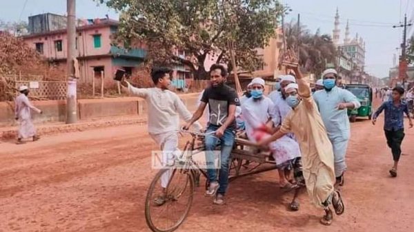 ভারতের প্রধানমন্ত্রী নরেন্দ্র মোদির আগমনকে কেন্দ্র করে সংঘর্ষে হাটহাজারীতে পুলিশের গুলিতে ৪ বিক্ষোভকারী নিহত হয়েছেন। আজ শুক্রবার বিকেল সাড়ে ৪টায় চট্টগ্রাম মেডিকেল কলেজ হাসপাতাল পুলিশ ফাঁড়ির এএসআই শিলব্রত বড়ুয়া চার জনের মৃত্যুর বিষয়টি নিশ্চিত করেছেন। তিনি বলেন, হাটহাজারী থেকে ৪ জন গুলিবিদ্ধ ব্যক্তিকে চমেক হাসপাতালে আনা হলে কর্তব্যরত চিকিৎসক মৃত বলে ঘোষণা করেন। এখনো তাদের পরিচয় জানা যায়নি। তিনি আরও বলেন, আহত হয়েছেন অর্ধশতাধিক। এদিকে সংঘর্ষের সময় মাদ্রাসার শিক্ষার্থীরা হাটহাজারী থানায় ভাংচুর চালায়। বর্তমানে তারা চট্টগ্রাম -খাগড়াছড়ি মহাসড়ক অবরোধ করে রেখেছে। আশেপাশের দোকানপাট বন্ধ আছে।