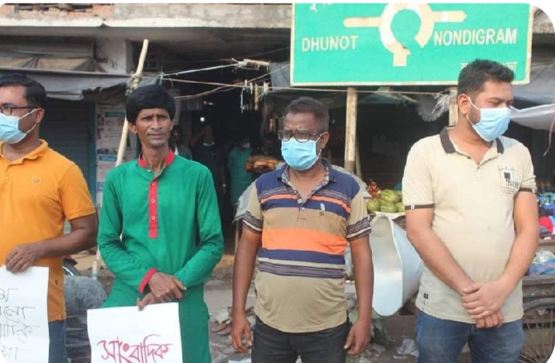 এ উপলক্ষে ১৯মে বুধবার বিকাল ৪টায় বগুড়ার শেরপুর স্থানীয় বাসস্ট্যান্ডে স্থানীয় গণমাধ্যমকর্মীদের ঘন্টাব্যাপী মানববন্ধন ও প্রতিবাদ সভা অনুষ্ঠিত হয়।
