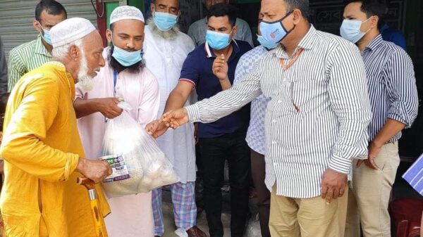 এসময় এলাকার গণ্যমান্য ব্যক্তিবর্গের উপস্থিতিতে মহামারী করোনা কালীন সময়ে ঘরে থাকা ১ শত জন প্রতিবন্ধীদের মাঝে খাদ্য সামগ্রী বিতরণ করার মধ্য দিয়ে তাদেরকে সমবেদনা প্রকাশ করেন।