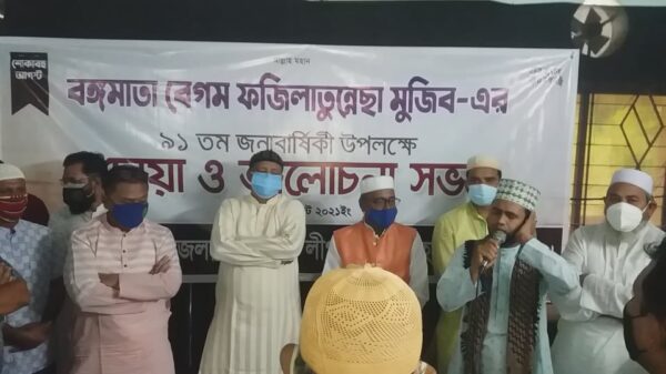 ফেনীর পরশুরামে বঙ্গমাতা বেগম ফজিলাতুন্নেছা মুজিবের জম্মবার্ষকী পালন করা হয়েছে।উপজেলা আওয়ামীলীগ ও এর অঙ্গসংগঠনের ব্যানারে আয়োজিত বঙ্গমাতা বেগম ফজিলাতুন্নেছা মুজিব এর ৯১ তম জম্মবার্ষিকী উপলক্ষে মিলাদ, দোয়া ও আলোচনা সভা অনুষ্ঠিত হয়।উপজেলা আওয়ামীলীগের সভাপতি ও উপজেলা চেয়ারম্যান আলহাজ্ব কামাল উদ্দীন মজুমদারের সভাপতিত্বে পৌর মিলনায়তনে আয়োজিত অনুষ্ঠানে বক্তব্য রাখেন উপজেলা আওয়ামীলীগের সাধারন সম্পাদক ও পৌর মেয়র নিজাম উদ্দীন আহমেদ চৌধুরী সাজেল। উপজেলা আওয়ামীলীগের যুগ্ম-সাধারন সম্পাদক ও জেলা পরিষদ সদস্য এম. সফিকুল হোসেন মহিম এর সঞ্চলনায় অন্যান্যের মাঝে বঙ্গমাতা বেগম ফজিলাতুন্নেছা মুজিব এর জীবনের উপর স্মৃতিচারণমূলক বক্তব্য রাখেন উপজেলা আওয়ামীলীগের সহ-সভাপতি ও বক্সমাহমুদ ইউনিয়ন পরিষদ চেয়ারম্যান মোঃ জাকির হোসেন চৌধুরী,বক্সমাহমুদ ইউনিয়ন আওয়ামীলীগের সভাপতি আবদুল গফুর,মির্জানগর ইউনিয়ন আওয়ামীলীগের সাধারন সম্পাদক ও স্থানীয় ইউনিয়ন চেয়ারম্যান নুরুজ্জামান ভুট্টু,পৌর আওয়ামীলীগের সাধারন সম্পাদক রাসুল আহমেদ মজুমদার,উপজেলা শ্রমিকলীগের সাধারন সম্পাদক আবদুল্লাহ্ আল মামুন,উপজেলা যুবলীগের যুগ্ম-আহবায়ক ফজলুল বারি মনছুর ও উপজেলা ছাত্রলীগের আহবায়ক জমির উদ্দীন ভাবন।এসময় অন্যান্যের মাঝে উপস্থিত ছিলেন চিথলিয়া ইউনিয়ন আওয়ামীলীগের সাধারন সম্পাদক ও স্থানীয় ইউনিয়ন পরিষদ চোয়ারম্যান জসিম উদ্দীন বুইজ্জা,উপজেলা আওয়ামীলীগের দপ্তর সম্পাদক একরামুল হক চৌধুরী ও যুবলীগের আহবায়ক এয়াছিন শরীফ মজুমদারসহ আওয়ামীলীগ,যুবলীগ,ছাত্রলীগ ও এর অঙ্গ সংগঠনের নেতৃবৃন্দ। শেষে বঙ্গবন্ধু শেখ মুজিবুর রহমান ও বেগম ফজিলাতুন্নেছা মুজিবসহ পরিবারের সকল সদস্যের বিদেহী আত্নার মাগফেরাত কামনা করে ও প্রধানমন্ত্রী শেখ হাসিনা ও তাঁর পরিবারের সকলের সুস্বাস্থ্য ও দীর্ঘায়ু কামনা করে বিশেষ মুনাজাত করা হয়।মুনাজাত পরিচালনা করেন পরশুরাম সরকারী কলেজ মসজিদের ইমাম মাওলানা দেলোয়ার হোসেন।