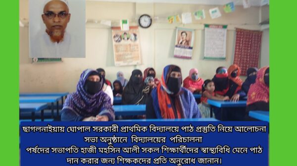 সারা বিশ্বের মত বাংলাদেশেও ছিল করোনা মহামারী।এর মাঝে গোটা বিশ্বে মৃত্যু হয়েছে লাখ লাখ মানুষের আক্রান্তের হারও ছিল বহুগুন বেশি।কোভিড-১৯ তথা করোনা মহামারী থেকে কোমলমতি শিক্ষার্থীদের মুক্ত রাখতে সরকারের নির্দেশনা অনুযায়ী দেশের সকল শিক্ষাপ্রতিষ্ঠান ছিল বন্ধ। প্রায় ১৮ মাস বন্ধ থাকার পর আবারো পূর্বের ন্যায় সরকারের নির্দেশনা অনুযায়ী শর্তসাপেক্ষে স্বাস্থ্য বিধি মেনে ১২ সেপ্টেম্বর দেশের সকল শিক্ষা প্রতিষ্ঠান খুলছে।এরই মাঝে শিক্ষা প্রতিষ্ঠানগুলো শিক্ষার্থীদের পাঠযোগ্য করতে সকল ধরনের পদক্ষেপ গ্রহন করেছে স্ব-স্ব কর্তৃপক্ষ।তারই ধারাবাহিকতায় ফেনীর ছাগলনাইয়া উপজেলার ঘোপাল ইউনিয়নের ঘোপাল সরকারী প্রাথমিক বিদ্যালয়ে কোমলমতি শিক্ষার্থীদের পাঠ প্রস্তুতি নিয়ে বিদ্যালয় পরিচালনা পর্ষদের সাথে শিক্ষকদের এক আলোচনা সভা অনুষ্ঠিত হয়।আজ ১১ সেপ্টেম্বর শনিবার সকালে বিদ্যালয় মিলনায়তনে উক্ত প্রস্তুতি সভা অনুষ্ঠিত হয়।বিদ্যালয় পরিচালনা পর্ষদের সভাপতি হাজী মহসিন আলী সকল শিক্ষার্থীদের স্বাস্থ্যবিধি মেনে পাঠ দান করার জন্য শিক্ষকদের প্রতি অনুরোধ জানান।বিশেষ করে সরকার ঘোষিত সকল শর্ত যথাযথভাবে পালন করার মাধ্যমে কোমলমতি শিক্ষার্থীদের পাঠ দান করতে বলেন।এসময় অন্যান্যের মাঝে উপস্থিত ছিলেন পরিচালনা পর্ষদের সহ-সভাপতি ও স্থানীয় ইউপি সদস্য জিয়া উদ্দীন শিমুল, বিদ্যালয়ের ভারপ্রাপ্ত প্রধান শিক্ষক রাজিব শর্মা,শিক্ষক প্রতিনিধি মোঃ আকবর হোসেন,সদস্য আবদুল মতিন,সদস্য আমির হোসেন ও সদস্য সাবিনা ইয়াছমিনসহ পরিচালনা পর্ষদের অন্যান্য সদস্যবৃন্দ ও শিক্ষকবৃন্দ।