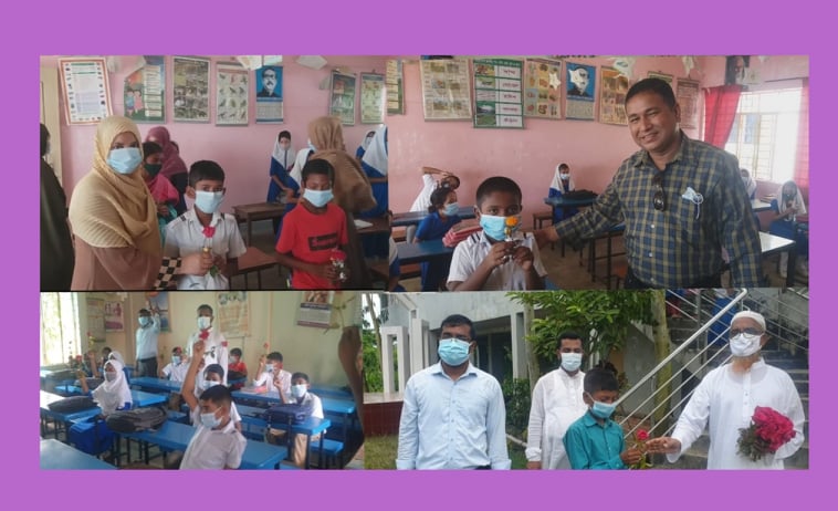 সারা বিশ্বের মত বাংলাদেশেও ছিল করোনা মহামারী।এরই মাঝে গোটা বিশ্বে মৃত্যু হয়েছে লাখ লাখ মানুষের আক্রান্তের হারও ছিল বহুগুন বেশি।কোভিড-১৯ তথা করোনা মহামারী থেকে কোমলমতি শিক্ষার্থীদের মুক্ত রাখতে সরকারের নির্দেশনা অনুযায়ী দেশের সকল শিক্ষাপ্রতিষ্ঠান ছিল বন্ধ। প্রায় প্রায় ১৮ মাস বন্ধ থাকার পর আবারো পূর্বের ন্যায় সরকারের নির্দেশনা অনুযায়ী শর্তসাপেক্ষে স্বাস্থ্য বিধি মেনে ১২ সেপ্টেম্বর দেশের সকল শিক্ষা প্রতিষ্ঠান খোলা হল।এই উপলক্ষে শিক্ষা প্রতিষ্ঠানগুলোর শিক্ষার্থীদের পাঠযোগ্য করতে সকল ধরনের পদক্ষেপ গ্রহন করে স্ব-স্ব কর্তৃপক্ষ।তারই ধারাবাহিকতায় ফেনীর ছাগলনাইয়া উপজেলার ঘোপাল ইউনিয়নের ঘোপাল সরকারী প্রাথমিক বিদ্যালয়ে কোমলমতি শিক্ষার্থীদের লাল গোলাপের শুভেচ্ছা জানিয়ে বরণ করে নেয় বিদ্যালয় পরিচালনা পর্ষদ ও শিক্ষকরা। আজ ১২ সেপ্টেম্বর রবিবার সকালে বিভিন্ন শ্রেণীকক্ষে ছাত্র-ছাত্রীদের হাতে লাল গোলাপ দিয়ে শুভেচ্ছা জানায় বিদ্যালয় পরিচালনা পর্ষদের সভাপতি হাজী মহসিন আলী। এসময় তিনি সকল শিক্ষার্থীদের স্বাস্থ্যবিধি মেনে পাঠ দান করার জন্য শিক্ষকদের প্রতি অনুরোধ জানান।বিশেষ করে সরকার ঘোষিত সকল শর্ত যথাযথভাবে পালনের মাধ্যমে কোমলমতি শিক্ষার্থীদের পাঠ দান করতে বলেন।এসময় অন্যান্যের মাঝে উপস্থিত ছিলেন পরিচালনা বিদ্যালয়ের ভারপ্রাপ্ত প্রধান শিক্ষক রাজিব শর্মা,শিক্ষক প্রতিনিধি মোঃ আকবর হোসেন, ও শিক্ষকবৃন্দ।