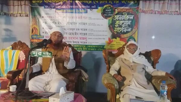 ফেনীর ছাগলনাইয়ায় শুভপুর ইউনিয়নের নতুন দারোগা বাজার রাস্তার মাথায় স্থানীয় ব্যবসায়ীবৃন্দ ও ওলামায়ে কেরামগণের উদ্যোগে ঐতিহাসিক ১২ তম তাফসীরুল কুরআন মাহ্ফীল হয়েছে। ০৯ জানুয়ারী ২২খ্রি.রবিবার ইউনিয়নের দারোগা বাজার রাস্তার মাথায় উক্ত মাহ্ফিল অনুষ্ঠিত হয়।বিশিষ্ট সমাজ সেবক ও শিক্ষানুরাগী আলহাজ্ব কাজী কেফায়েত উল্যাহ এর সভাপতিত্বে প্রধান বক্তার বয়ান করেন চট্টগ্রাম আন্তর্জাতিক ইসলামী বিশ্ববিদ্যালয় এর অধ্যাপক আন্তর্জাতিক খ্যাতি সম্পন্ন মুফাচ্ছিরে কুরআন হযরত মাওলানা ড.বি.এম.মফিজুর রহমান আল আজহারী। অন্যান্যের মাঝে বয়ান করেন জাতীয় বিশ্ববিদ্যালয়ের সহকারী অধ্যাপক ড.মুফ্তি ইমাম হোছাইন। নবনির্বাচিত ইউপি সদস্য মোকছেদ আহমেদ মুন্না এর সঞ্চালনায় অন্যান্যের মাঝে বয়ান করেন দারোগাহাট আবুল কাশেম ইসলামিয়া আলিম মাদ্রাসার সহকারী শিক্ষক হযরত মাওলানা আমির হোছাইনসহ আরো বহু ওলামায়েকেরাম মাহ্ফিলে বয়ান করেন। বিভিন্ন স্থান থেকে আগত ধর্মপ্রাণ মুসলিমরা মাহফিলে অংশ নেয়।