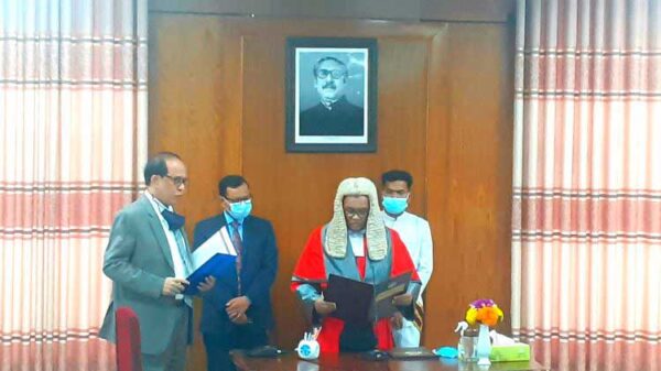 রবিবার বিকেল সাড়ে চারটার দিকে সুপ্রিম কোর্টের জাজেস লাউঞ্জে সিইসি ও চারজন নির্বাচন কমিশনারকে শপথ বাক্য পাঠ করান প্রধান বিচারপতি হাসান ফয়েজ সিদ্দিকী।