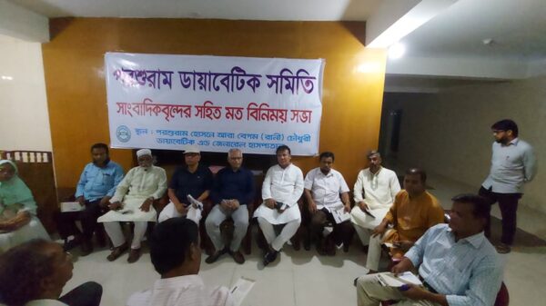 পরশুরাম ডায়াবেটিক সমিতির উদ্যোগে ” পরশুরাম হোসনে আরা বেগম চৌধুরী ডায়াবেটিক এন্ড জেনারল হাসপাতালে রোগীর সেবামূলক বিষয়ে সাংবাদিকদের সাথে মতবিনিময় করেছে কর্তৃপক্ষ।১৪ মে রাতে হাসপাতালের সম্মেলন কক্ষে আয়োজিত উক্ত মতবিনিময় সভা অনুষ্ঠিত হয়।প্রতিষ্ঠানের সভাপতি জাহাঙ্গির আলমের সভাপতিত্বে ও সাধারন সম্পাদক মীর আহাম্মদ চৌধুরীর সঞ্চালনায় অন্যান্যের মাঝে উপস্থিত ছিলেন সহ-সভাপতি সিরাজুল মোস্তফা চৌধুরী,আব্দুল খালেক কন্ট্রাক্টর,যুগ্ম-সাধারন সম্পাদক মোহাম্মদ হাসেম,মহিউদ্দীন আহম্মেদ,কোষাধক্ষ্য মোঃ ছাইদ উল্ল্যা মজুমদার হুমায়ুন,সদস্য নিলুফা করিম,খোরশেদ আলম হেলাল,শহিদুল্লাহ মজুমদার,ওয়াছিমমুছ শাহাদাৎ নওশাদ,নুর আহম্মদ মজুমদার তারু, জসিম উদ্দীন,আবুল কালাম আজাদ,নেহাল মাহমুদ,শ্রী বাবুল চন্দ্র সাহা,আব্দুল মুনাফ চৌধুরী,আবুল কালাম ও আবদুর রউফ মজুমদার। এসময় হাসপাতালের সাধারণ সম্পাদক মীর আহাম্মদ চৌধুরী ডায়াবেটিক সমিতিকে আরো এগিয়ে নিতে এবং রুগীর যথাযথ সেবা নিশ্চিত করার বিষয়ে সাংবাদিকদের অবহিত করেন।সভাপতি জাহাঙ্গীর আলম তার বক্তব্যে বলেন প্রতিষ্ঠানটির উন্নয়নের লক্ষে সাংবাদিকদের সহযোগীতা কামনা করেন।তিনি আরো বলেন এখন থেকে এই অঞ্চলের কোন রুগী বহু অর্থ ব্যয় করে পরীক্ষার জন্য ফেনী,চট্টগ্রাম বা ঢাকা যেতে হবেনা।এখানেই অভিজ্ঞ চিকিৎসকের মাধ্যমে উন্নতমানের সেবা স্বল্প মূল্যে গ্রহন করতে পারবে।