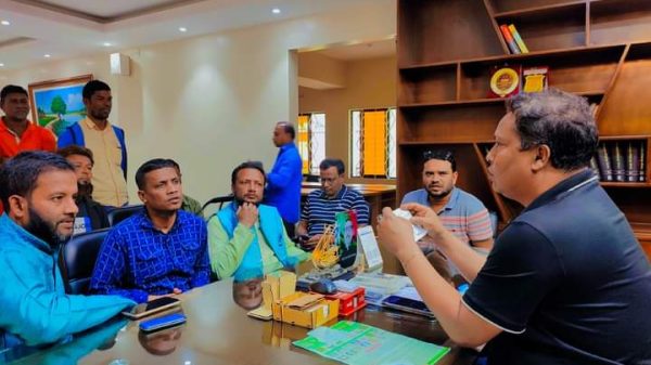 পরশুরামে সাজেল চৌধুরীর সাথে রিকশা শ্রমিকদের সাথে মতবিনিময় সভা